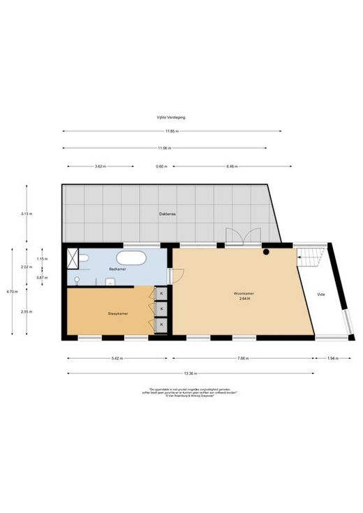 Deze informatie is door ons met de nodige zorgvuldigheid samengesteld. Onzerzijds wordt echter geen enkele aansprakelijkheid aanvaard voor enige onvolledigheid, onjuistheid of anderszins, dan wel de gevolgen daarvan. Alle opgegeven maten en oppervlakten zijn indicatief. Koper heeft zijn eigen onderzoek plicht naar alle zaken die voor hem of haar van belang zijn. Met betrekking tot deze woning is de makelaar adviseur van verkoper. Wij adviseren u een deskundige makelaar in te schakelen die u begeleidt bij het aankoopproces. Indien u specifieke wensen heeft omtrent de woning, adviseren wij u deze tijdig kenbaar te maken aan uw aankopend makelaar en hiernaar zelfstandig onderzoek te (laten) doen. Indien u geen deskundige vertegenwoordiger inschakelt, acht u zich volgens de wet deskundige genoeg om alle zaken die van belang zijn te kunnen overzien. Van toepassing zijn de VBO voorwaarden.
